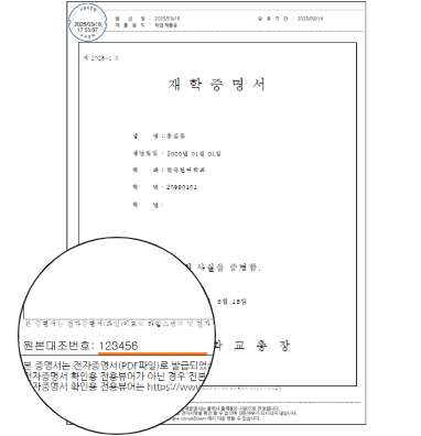 증명서 번호로 원본 검증